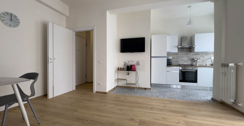 L'appartamento è composto da ingresso, soggiorno con cucina a vista, una camera da letto, doppi servizi (di cui uno in camera) e terrazzino.
